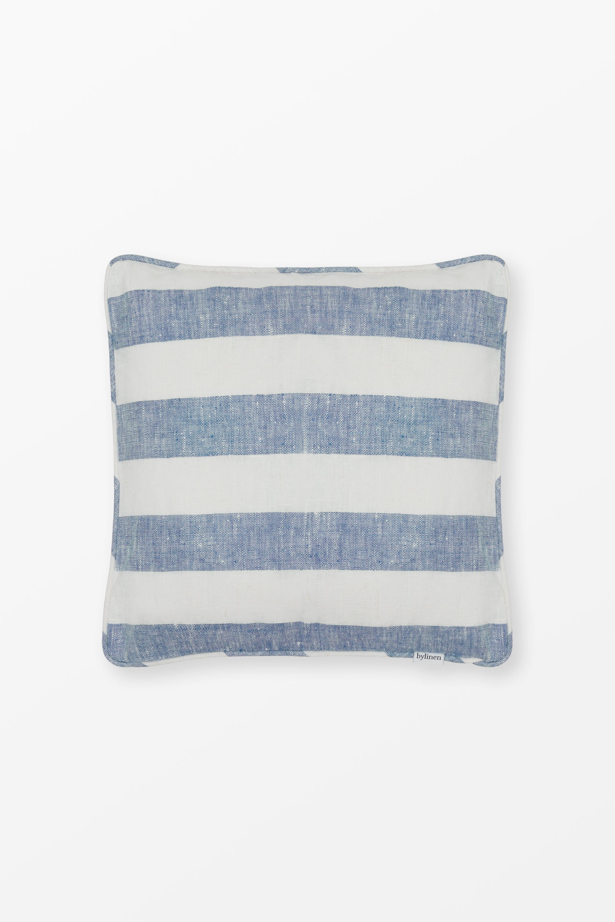 This striped cushion is the prettiest addition to your bedroom, living room or nursery. It is reversible, made in 100% linen with a matching trim all the way around the edge.