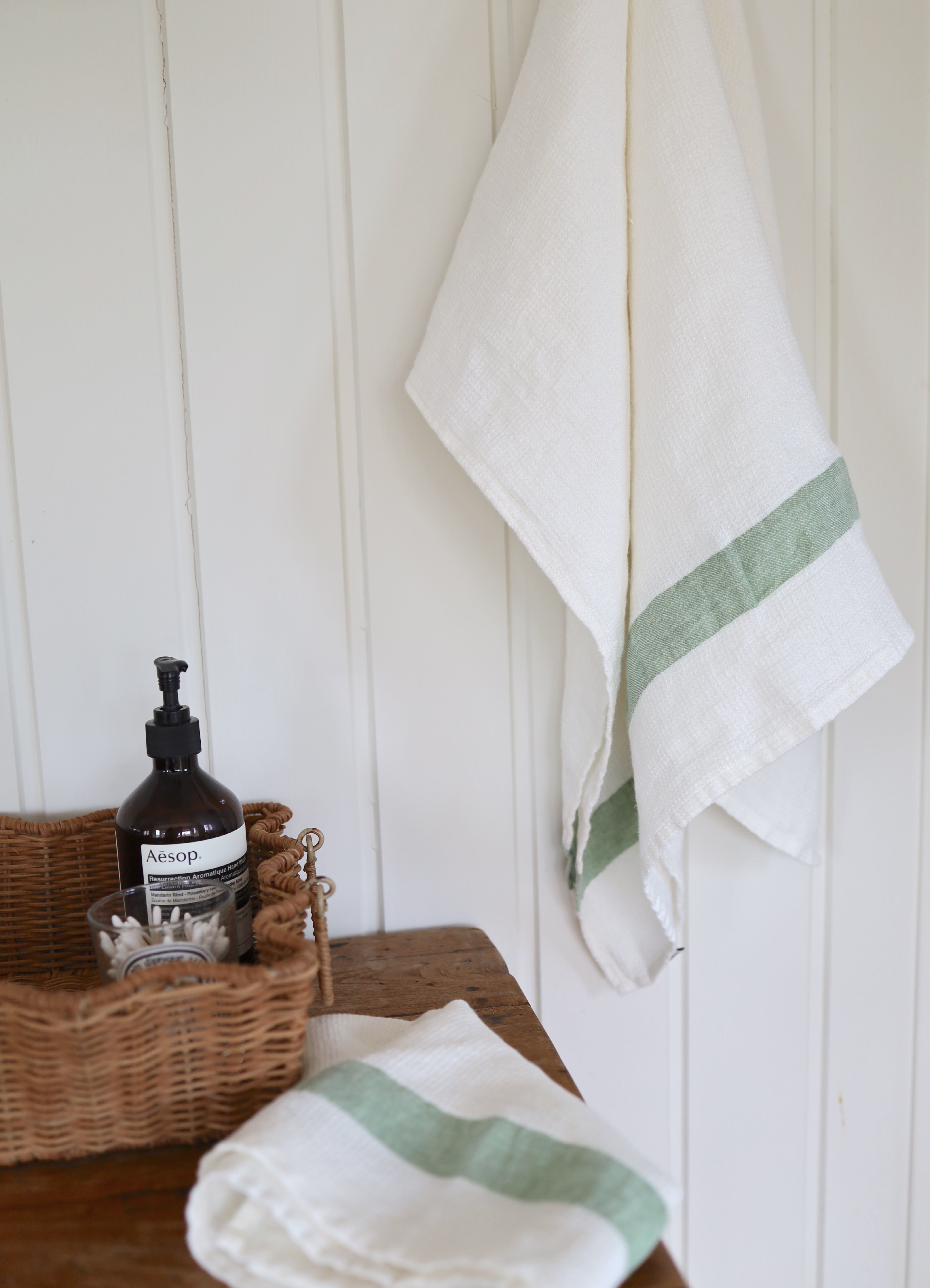 Our linen waffle towel offers great absorption and astonish softness. The bath towel comes in two sizes.