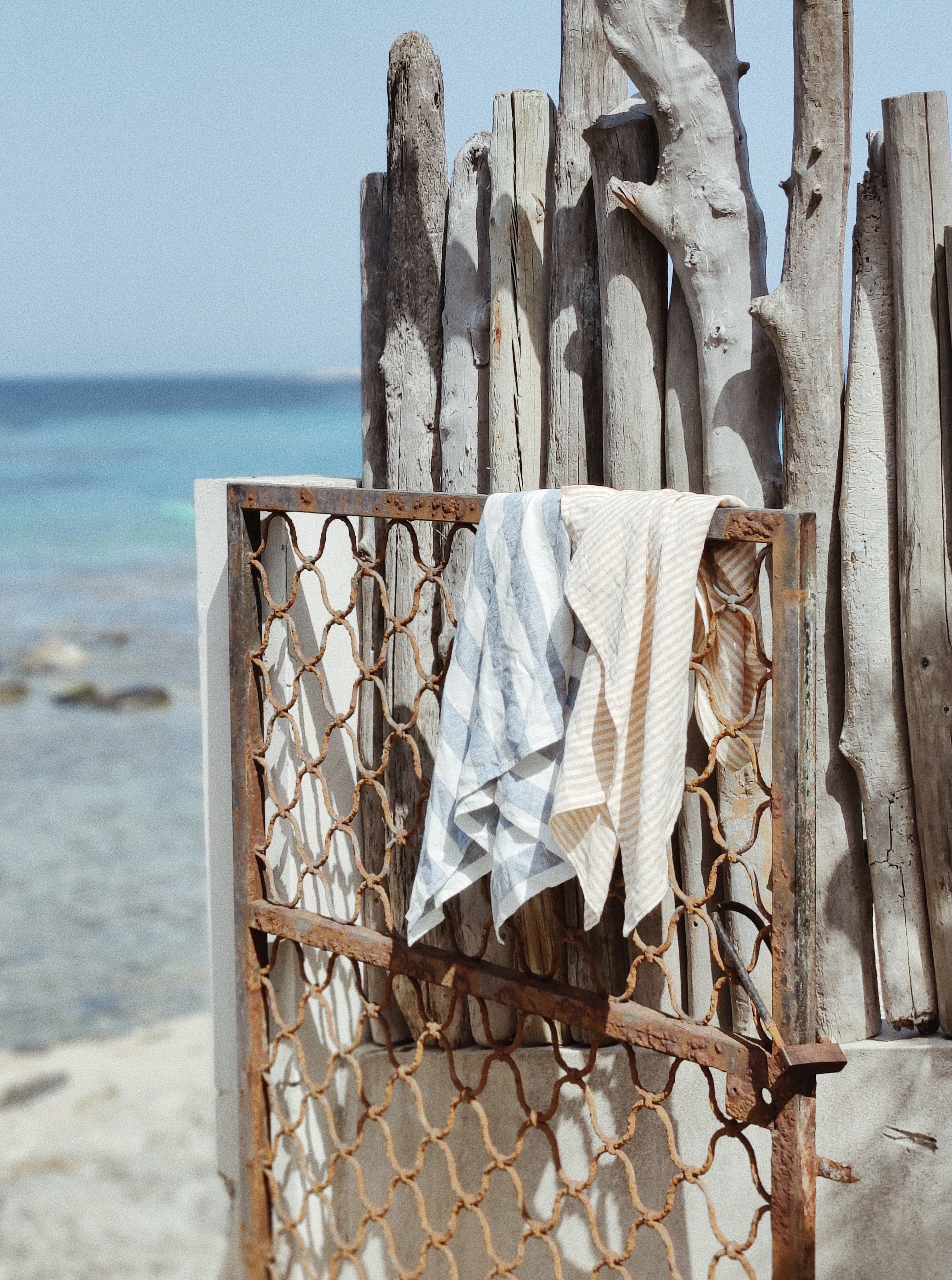 Crafted in a soft, absorbent linen, our striped towel is the perfect beach accompaniment. Available in a pallet of pastel stripes and our Embroidery Studio can also personalise it, to truly make the most perfect gift.