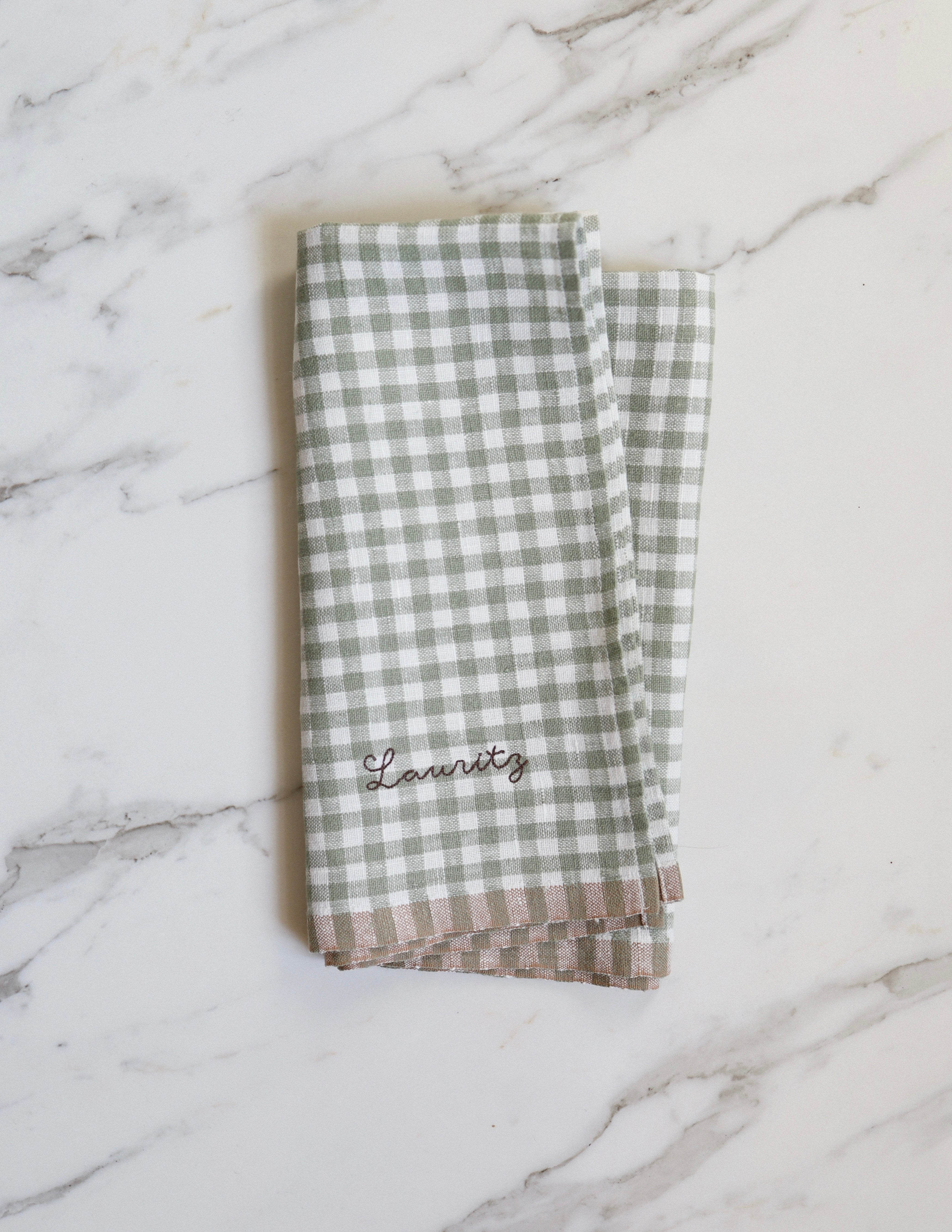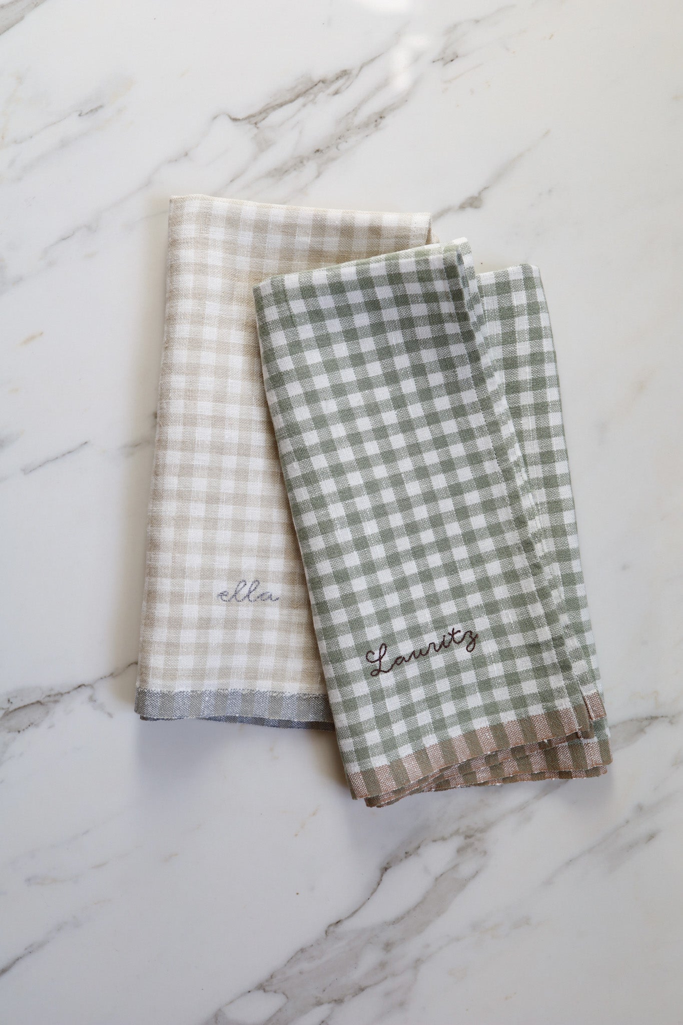 Our beautiful gingham napkins with contrasting border are made from premium linen in Europe. The napkins add a relaxed and sophisticated feel to any table settings. - Our Embroidery Studio can personalise it, to truly make the most perfect gift.