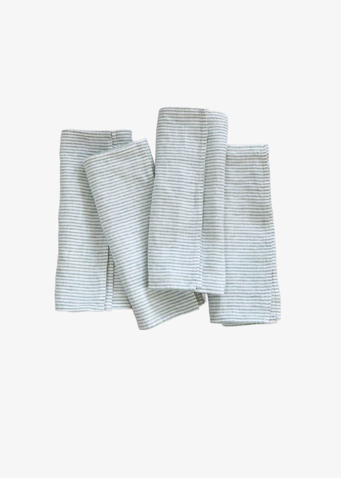 Our beautiful striped napkins are made from premium linen in Europe. This long and narrower model stays in the lap and don't fall to the floor so easily.
