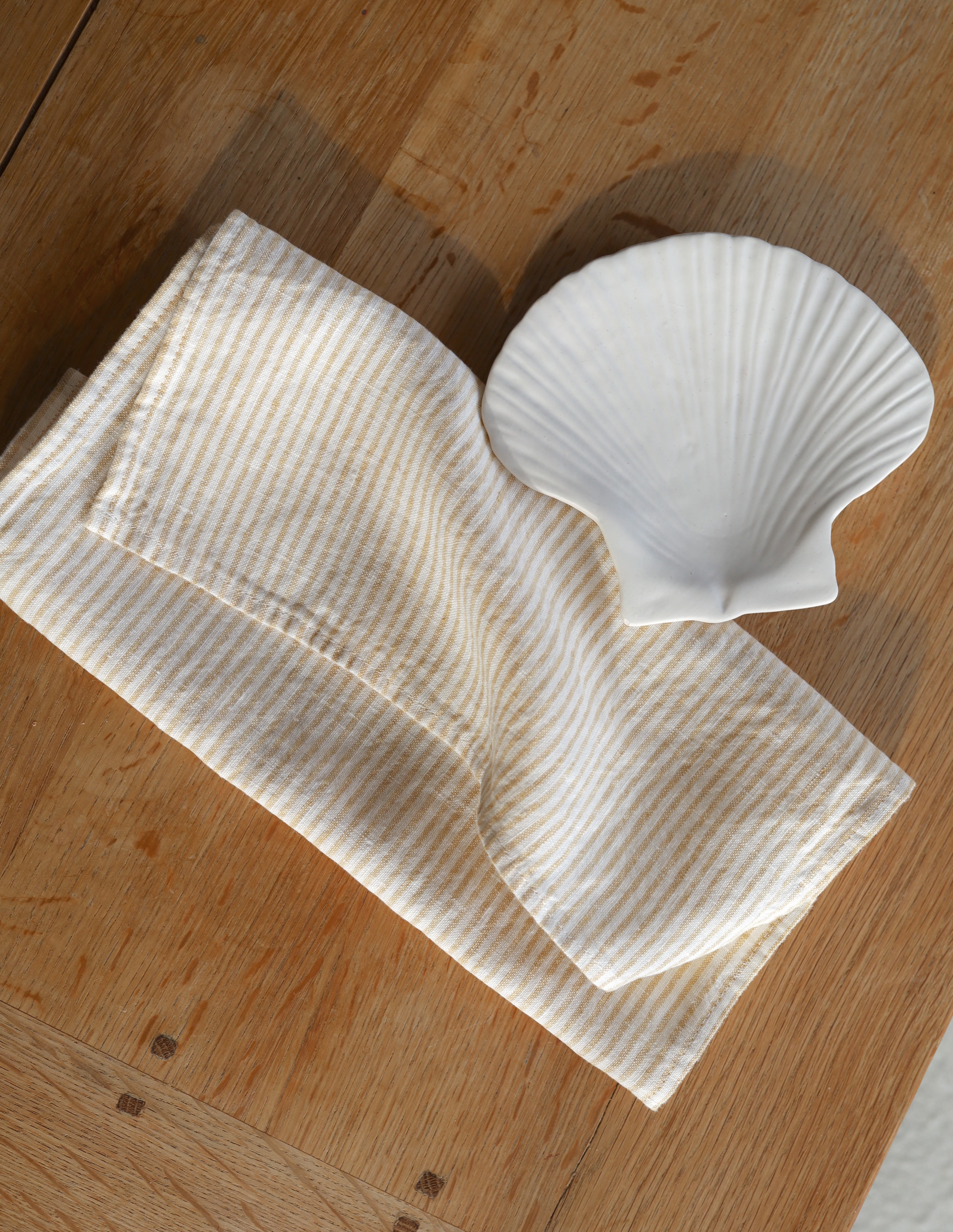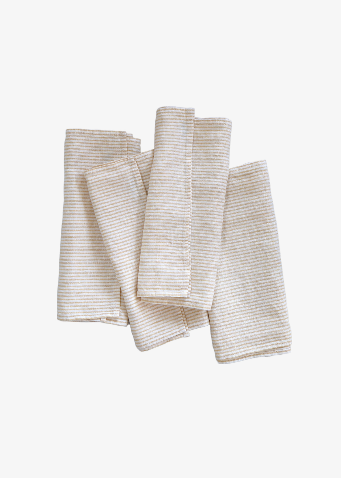 Our beautiful striped napkins are made from premium linen in Europe. This long and narrower model stays in the lap and don't fall to the floor so easily.