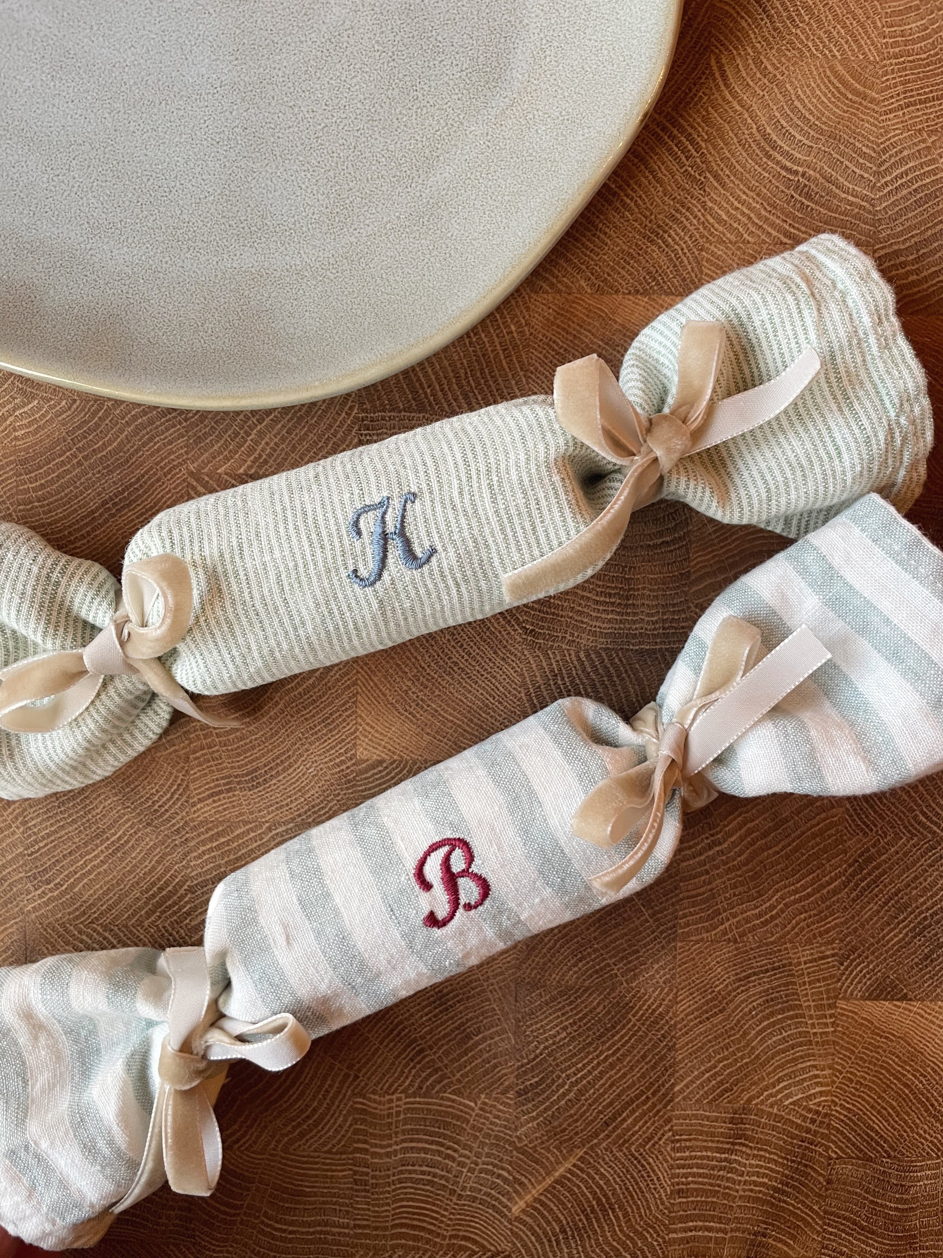Our beautiful striped napkins are made from premium linen in Europe. This long and narrower model stays in the lap and don't fall to the floor so easily.