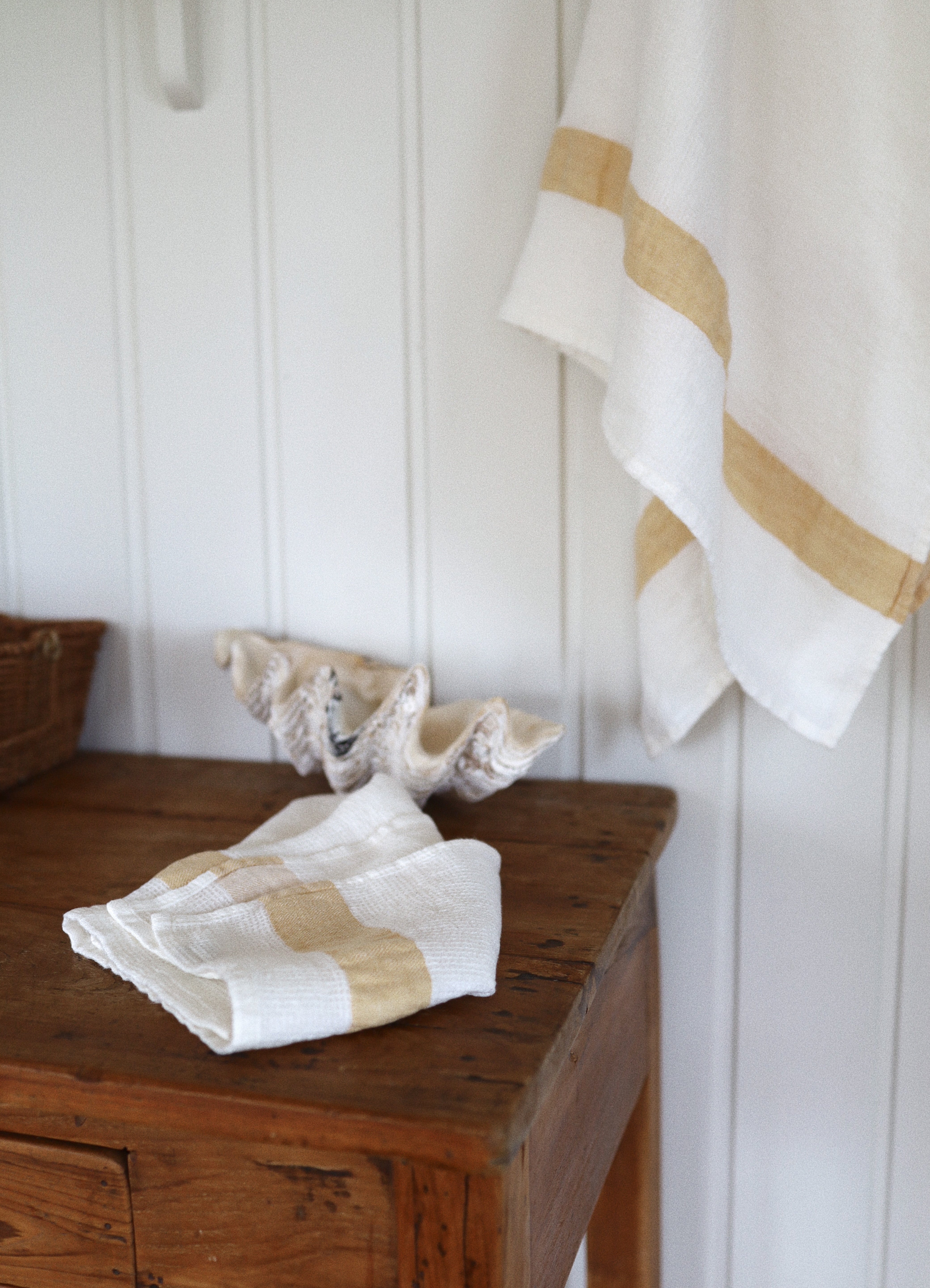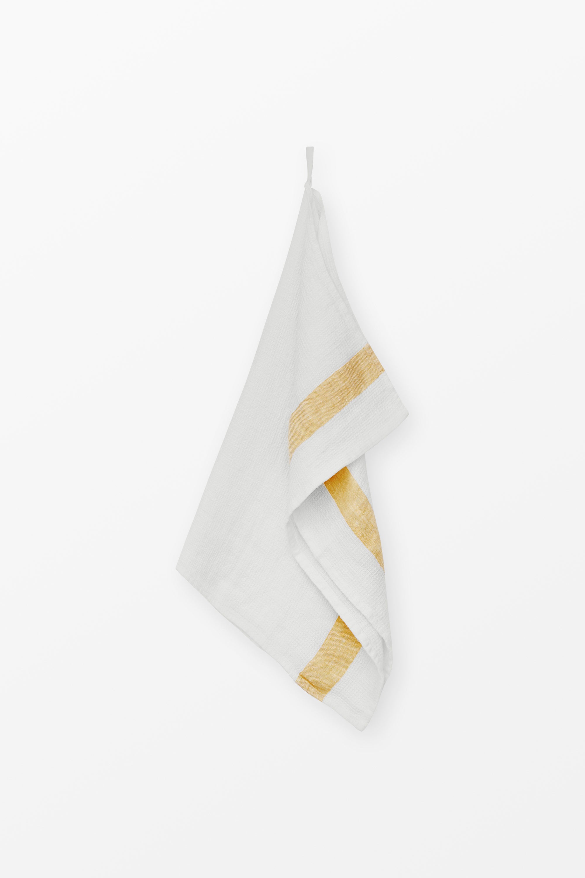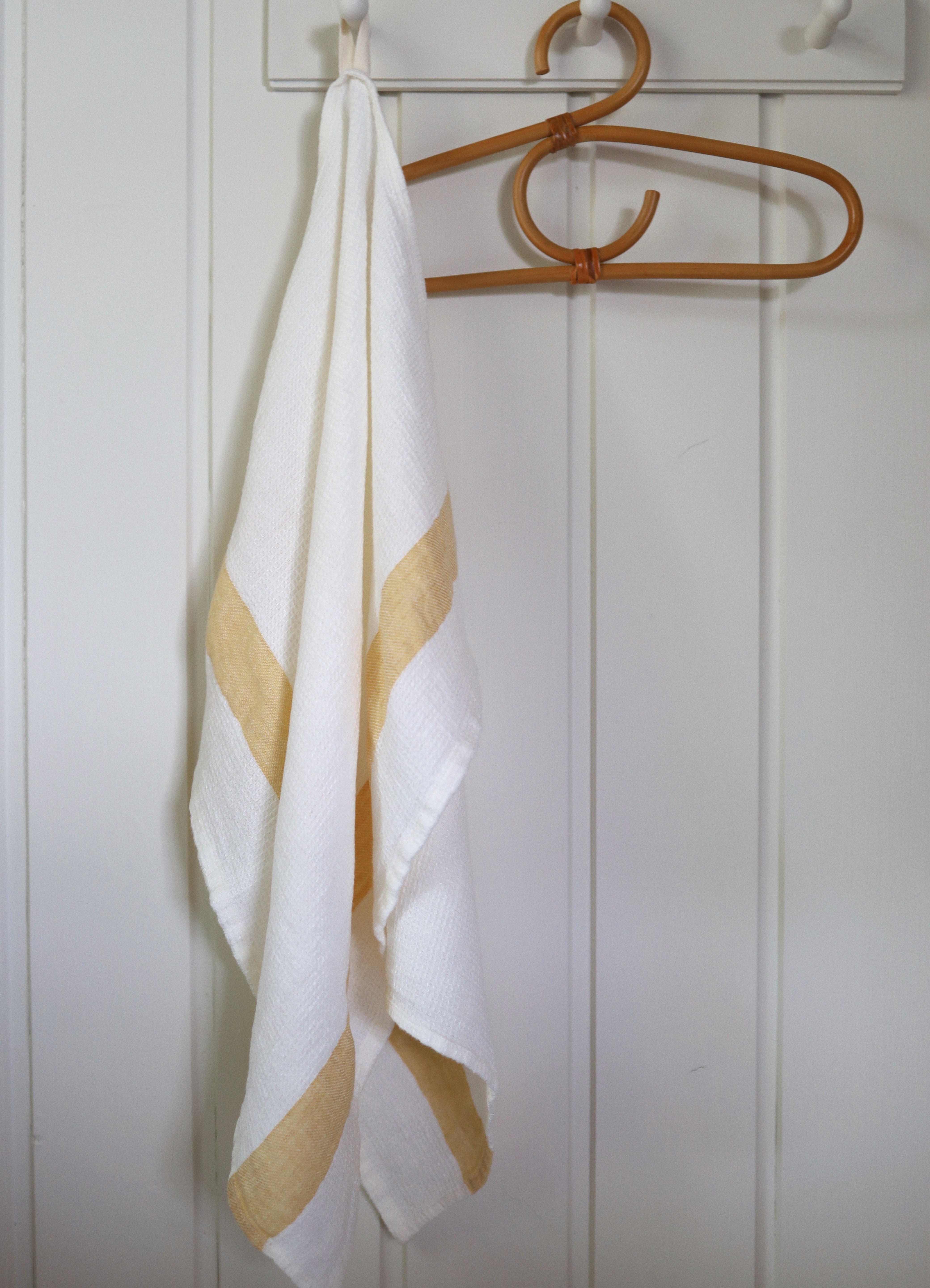 Linne Våfflad Handduk Liten - Gul rand
