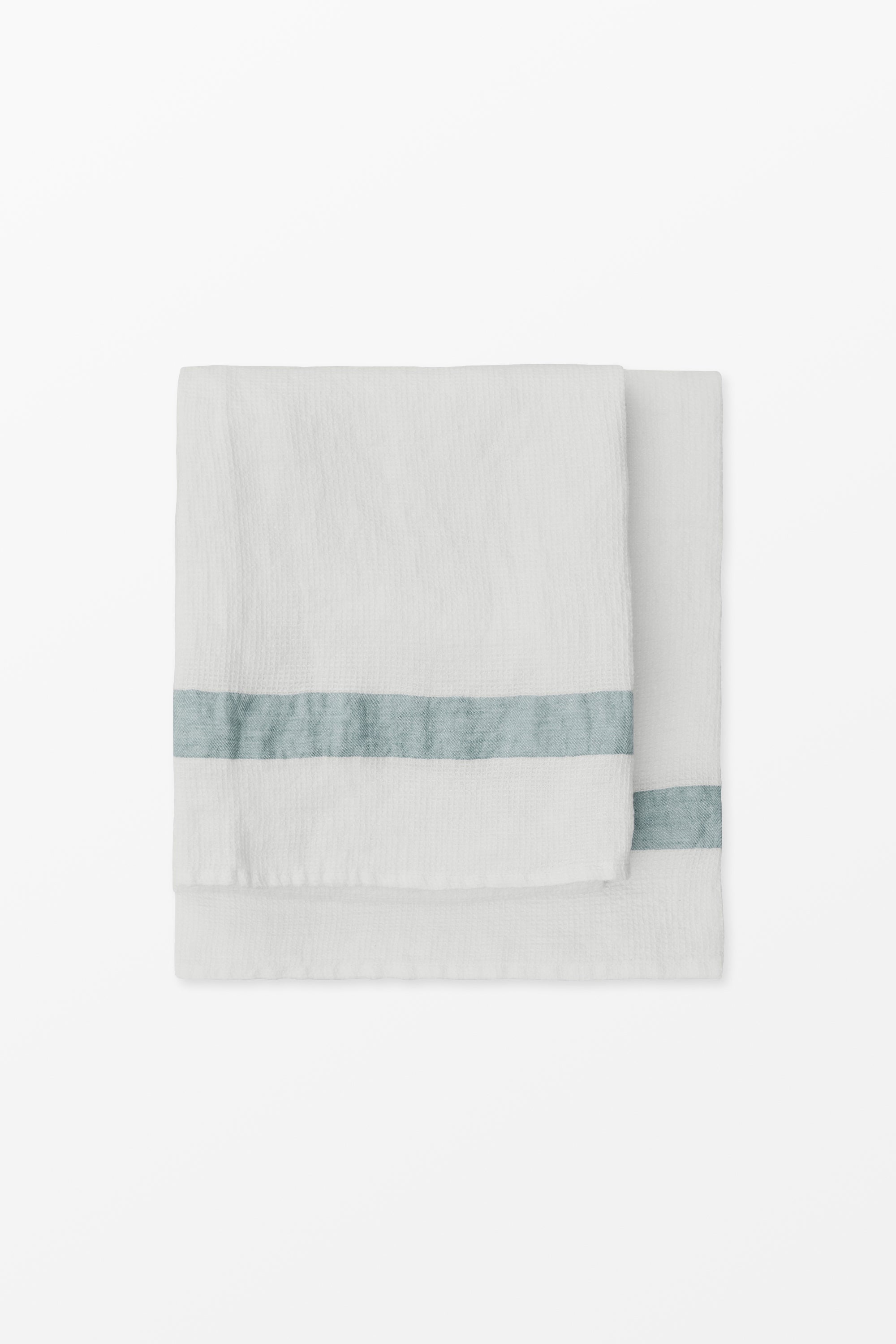 Linne Våfflad Handduk - Blå rand